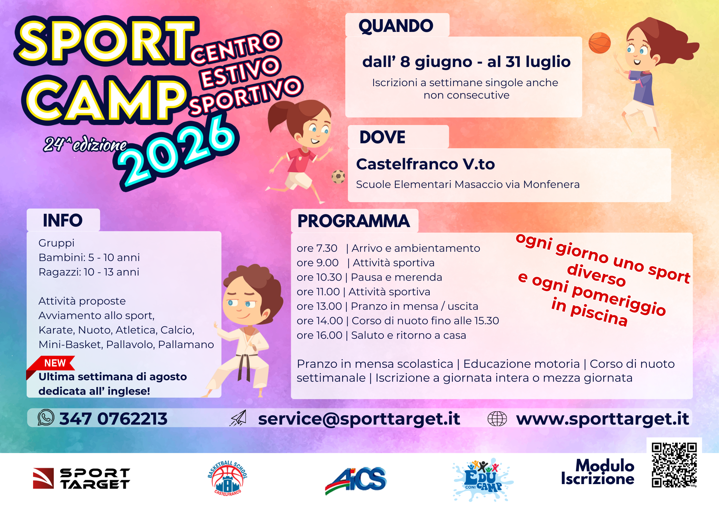 L’estate si avvicina e con SPORT TARGET torna l’evento più atteso dai giovani sportivi: SPORT CAMP 2026! Dal 8 giugno, un’esperienza unica tra sport, amicizia e divertimento a Castelfranco Veneto!